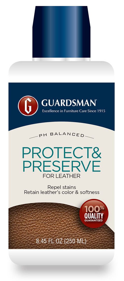 Guardsman® Protect & Preserve Leather cleaner is a world class product to protect your leather against stains and other items on your leather furniture; product is applied 30 minutes after Guardsman Clean & RenewRead More
