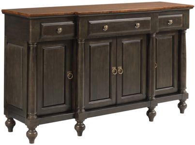 The Bridgetown Harrison credenza from Kincaid® blends classic charm with modern functionality. Crafted from solid wood, it features a bold black finish, ample storage, and intricate detailing, making it a stylish and practical centerpiece for any room.Read More