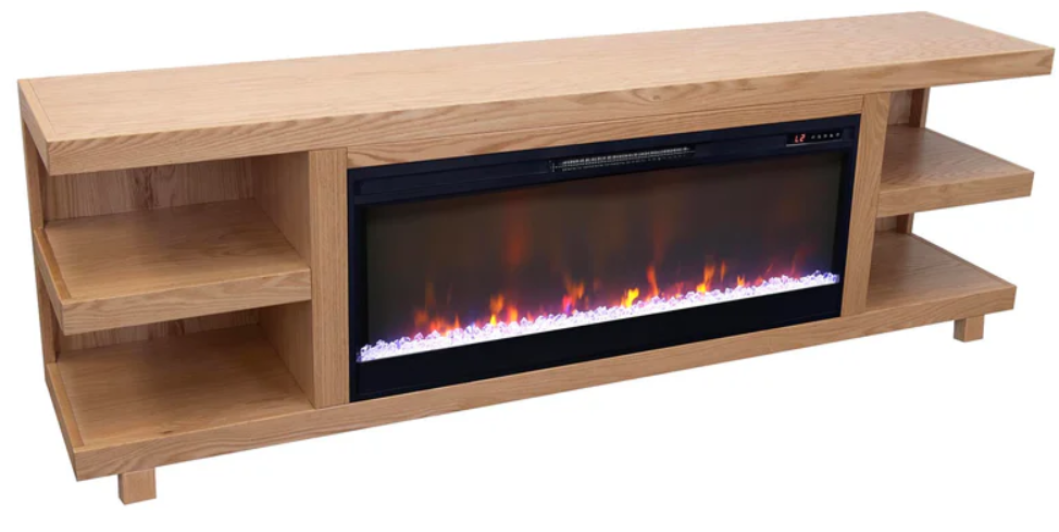 The Laurel Canyon 82 inch Fireplace TV Stand Console delivers the perfect blend of modern, urban style with rustic tranquility. Skillfully crafted from Oak Solids and Veneers, this robust Entertainment Center with Fireplace is available in your choice of three finish and features unique, open-ended shelvingRead More
