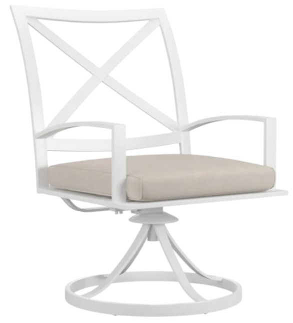 The Bristol Swivel Dining Chair is rendered in high quality, low-maintenance aluminum that will stand the test of time. This chair features a gently curved X back and seat scaled for comfort, with swivel base and subtly curved arms.Read More
