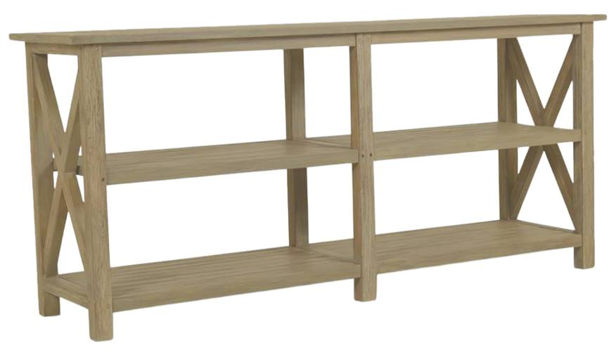 Sunset West's Coastal Teak X Console is a beautifully contemporary take on classic teak furnishings. With an open silhouette features an X design and sleek lines, complemented with seamless joinery. Our unique multi-step finish gives the natural wood a warm grey color, complementing our other collections for the perfectly curated coastal design.Read More