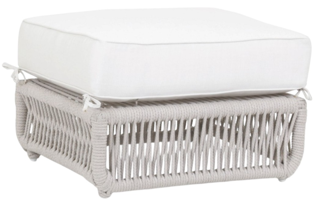 The Dana Ottoman features a plush 6" cushion and a sleek box frame wrapped in premium all-weather olefin rope in natural Linen, offering durable comfort and sophisticated style for both indoor and outdoor spacesRead More