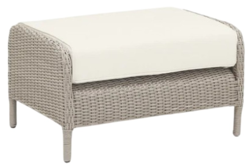 The Manhattan Ottoman from Sunset West incorporates organic curves and sleek lines for a transitional take on outdoor living. Featuring sleek post legs, its elegantly curved frame is expertly wrapped in all-weather premium resin wicker in Dove Grey.Read More