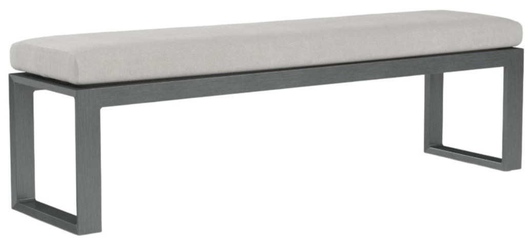 The Redondo Dining Bench blends modern and industrial sensibility into one striking design, featuring a slat seat and linear frame. Crafted in powder coated aluminum in a hand-brushed Slate finish, this bench pairs perfectly with our Redondo 90"" Dining Table.Read More