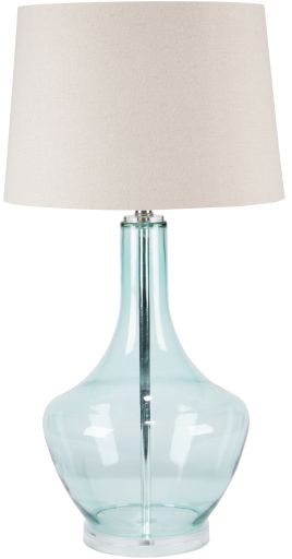 Add this alluring lamp to your decor with a dash of dazzling color. With a transparent blue glass / acrylic base and crisp white linen shade, this piece exudes trend elements while maintaining a classic charm that allows it to become a perfect finishing touch within any home decoration from room to room.