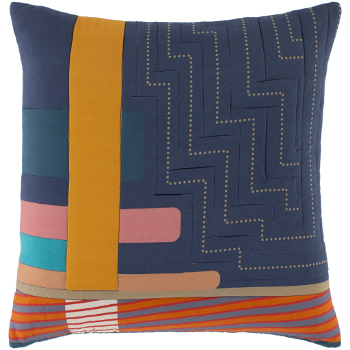 The Ellie Dark Blue 20" x 20" Toss Pillow from Surya features a polyester insert, knife-edge design, and is made in India.